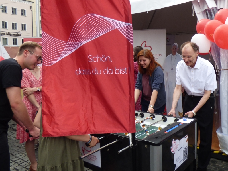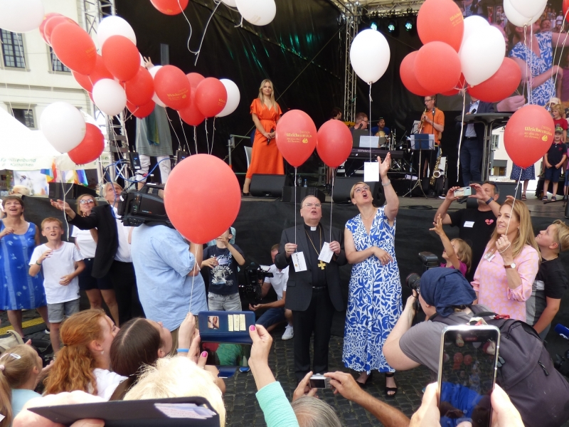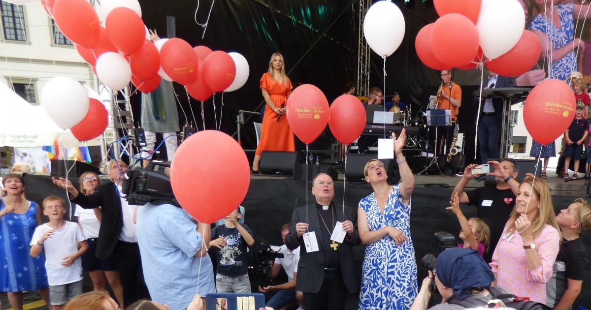 Fast 1000 Personen sind am 8. Juli 2023 auf den Rathausplatz in Augsburg gekommen, um den gemeinsamen Auftakt für das Ulrichs-Jubiläumsjahr 2023 / 2024 mitzuerleben. Oberbürgermeisterin Eva Weber und Bischof Dr. Bertram Meier eröffneten mit einem Luftballonstart das Gedenkjahr 1100. Jahrestag der Bischofsweihe und 1050. Todestag des heiligen Ulrich (890 – 973) für die Stadt und Bistum Augsburg. Kolping war mit rund 40 weiteren Verbänden, kirchlichen Einrichtungen, und diözesanen Abteilungen mit einem Stand auf der Informationsmaile vertreten.