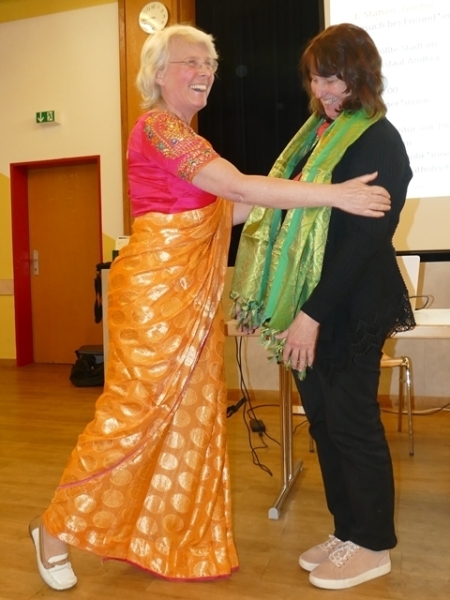 Im Rahmen der Mitgliederversammlung der Kolpingsfamilie Kriegshaber konnte am Mittwoch, 07. Mai 2025, ein besonderer Gast begrüßt werden. Nach Vorstandswahlen, Jahresrückblick und weiteren Regularien betrat eine mit dem traditionellen indischen Gewand, dem Sari, bekleidete Frau, den Raum und wurde herzlich begrüßt. Vera Heinz, Mitglied im Diözesanvorstand und zuständig für den Bereich „Eine Welt“ berichtete in einer lebendigen Bildershow von ihrer vergangenen Reise nach Indien.