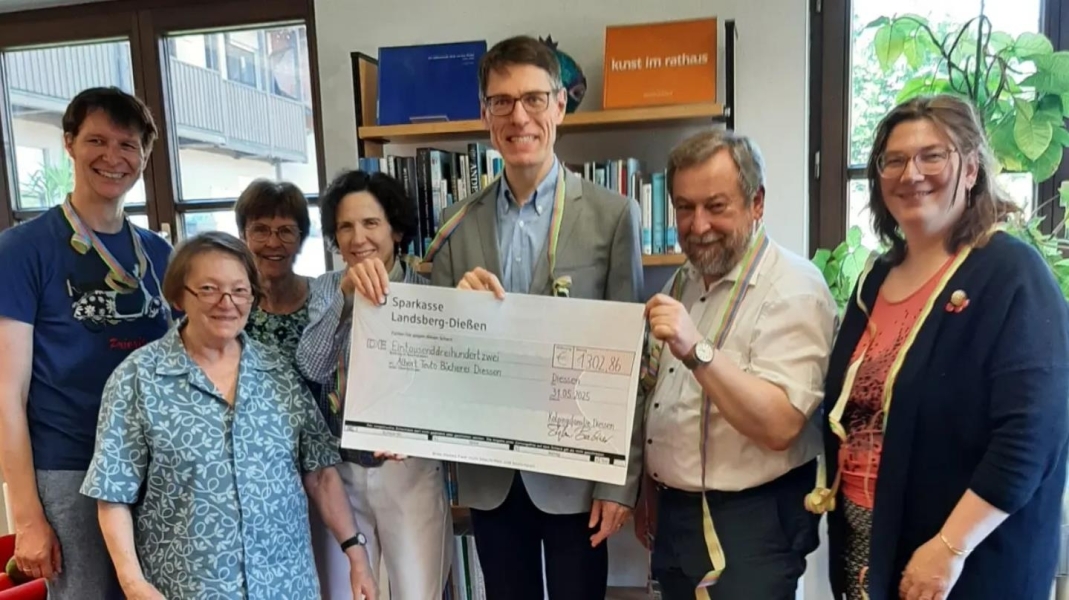 Anlass zu großer Freude gab es in der Albert Teuto Bücherei: Die Kolpingsfamilie Dießen spendete 1302,86 Euro für die Bücherei-Arbeit. Die „krumme Summe“ kam dadurch zustande, dass der komplette Erlös aus dem Familienfasching, bei dem auch Büchereileiter Johannes Schindlbeck mitgewirkt hatte, gespendet wurde. „So kommt das Geld auch wieder denjenigen zugute, die es ausgegeben haben, denn viele der Familien, die am Fasching teilgenommen haben, besuchen auch die Bücherei“, begründete Stefan Brachner, Vorsitzender der Kolpingsfamilie Dießen, die Spende. Außerdem stehen für ihn die Bildung und der Gemeinschaftsaspekt in der Bücherei im Vordergrund.