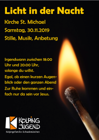Die Adventszeit ist die schönste Zeit des Jahres. Eigentlich. Die vielen Lichter, die besinnliche Musik und das Warten auf die Geburt Jesu. All das kommt in der Realität allerdings viel zu kurz. Genau deshalb gestaltet die Kolpingjugend Schwabmünchen auch dieses Jahr wieder die Veranstaltung „Licht in der Nacht“, die am 30. November 2019 von 18 bis 20 Uhr in der Stadtpfarrkirche St. Michael in Schwabmünchen stattfinden wird. mehr